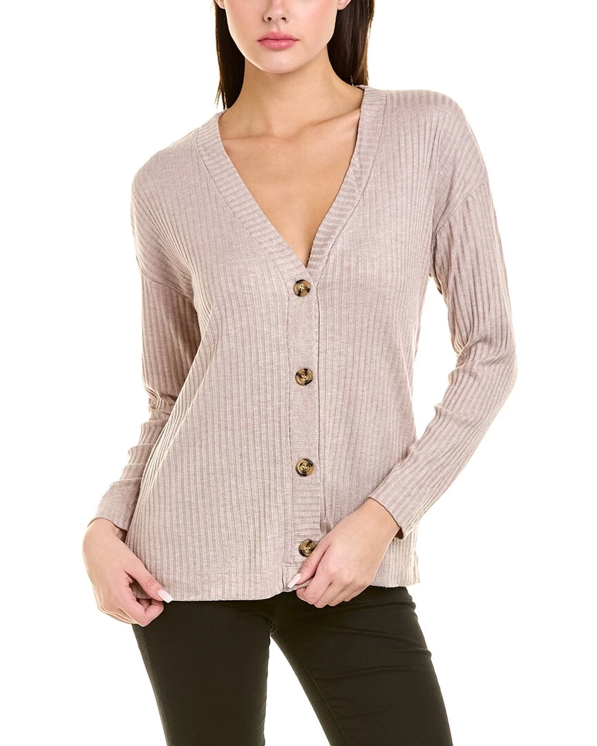 - Cardigan In Oatmeal Heather With V-Neck And Dropped-Shoulder Sleeves