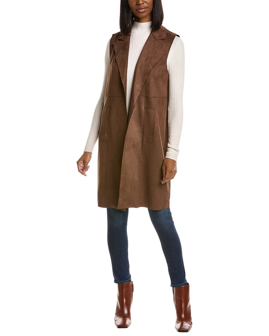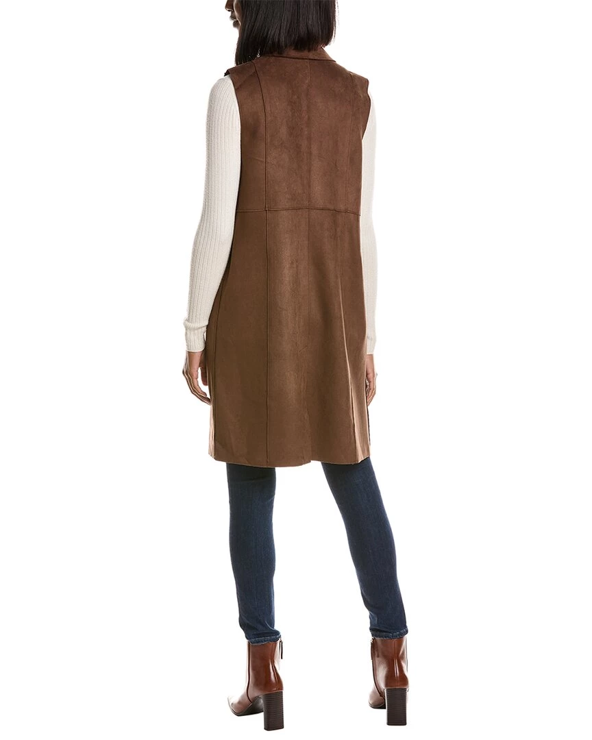 - Notch Collar Vest In Coffee Brown With Faux Suede Design, Notch Lapel, And Dual Front Pockets